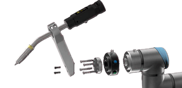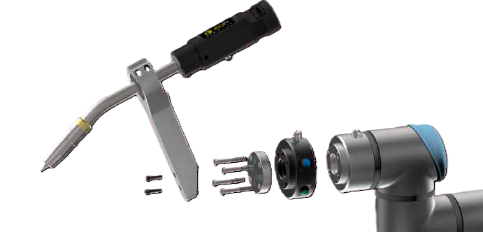 Welding torches designed for collaborative robots do not need anti-collision systems, which makes them lighter and easier to set up. They can be used with control elements to facilitate the programming of the robot with the position 4 disc, but this is not necessary if your application does not require it.